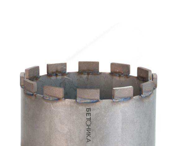 Премиум сегмент создан в первую очередь для работы насухую, в том числе с применением микроудара, а также там, где нужна скорость. Сегмент с равноудалённым расположением алмазной крошки, технология производства отличается от стандартной, сегмент пекут слоями. На выходе мы получаем одни из лучших показателей скорость/ресурс для средних и слабых моторов. Из-за особенности его производства стирается по мере износа в высоту, но не в толщину, и вы до конца его ресурса получаете стабильный зазор между керном и корпусом. Это позволяет сохранять толщину стенки корпуса и обеспечивает лёгкий вылет керна из коронки. Особенно это актуально при работе без воды и с руки, когда зазор имеет важную роль не только для выхода пыли, но и для сверления без заклинивания и трения корпуса. Мощные моторы, такие как Hilti DD350 не подходят для этого сегмента, так как ресурс будет cкромным. Для бурения без воды выбирайте этот сегмент с меньшим количеством сегментов на коронке. Высота 12 мм.